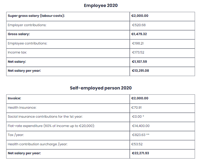 Porównanie dochodów: pracownik/osoba samozatrudniona (na 2020 r.)